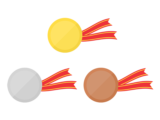 金銀銅のリボン付きの、ギザギザ縁メダルの無料イラスト|透過PNG・商用利用OK