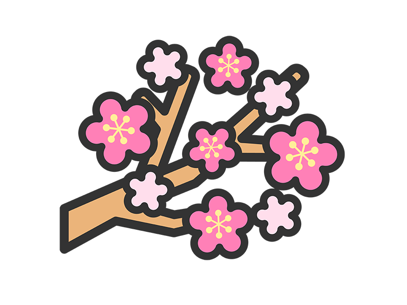 梅の木のアイコン(線画カラー)の無料イラスト|透過PNG・商用利用OK
