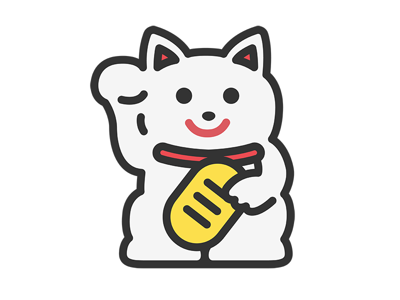招き猫のアイコン(線画カラー)の無料イラスト|透過PNG・商用利用OK