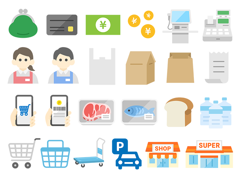 スーパーマーケット関連のイラストセット