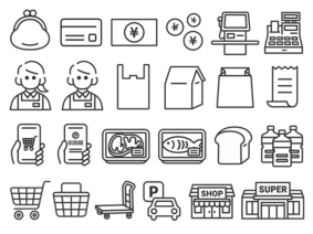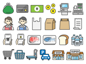 life_iconFree illustration set of various supermarket-related icons (line drawing color)