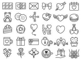 アイコン豪華版!バレンタインデーのスペシャルアイコン(線画)の無料イラストセット|透過PNG・商用利用OK