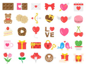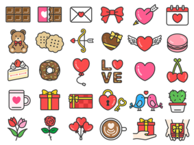アイコン豪華版!バレンタインデーのスペシャルアイコン(線画カラー)の無料イラストセット|透過PNG・商用利用OK