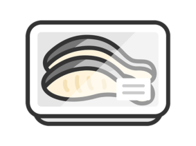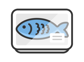 アイコンスーパーのパックに入った、魚の切り身のアイコン(線画カラー)の無料イラスト|透過PNG・商用利用OK