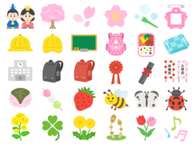 いろいろな、春シーズンアイコンの無料イラストセット|透過PNG・商用利用OK