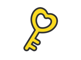 アイコンハート型の鍵のアイコン(線画カラー)の無料イラスト|透過PNG・商用利用OK