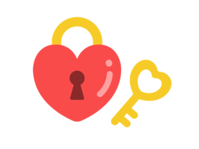 アイコンハート型の南京錠と鍵のアイコンの無料イラスト|透過PNG・商用利用OK