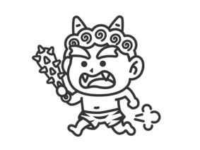 節分金棒を持って追いかける、青鬼(線画)の無料イラスト|透過PNG・商用利用OK